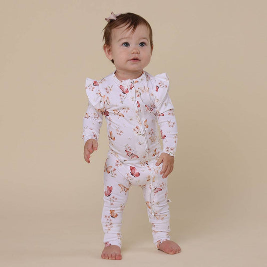 Butterfly Organic Snugglesuit Convertible Romper with Frill