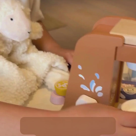 Perk up playtime with our Wooden Coffee Machine Set! Little ones will love brewing up pretend espressos and frothy cappuccinos with this charming and colourful set. It's the perfect brew for imaginative play and honing fine motor skills. Crafted from sustainably sourced wood from FSC® certified forests and coated with non-toxic, child-safe paint.