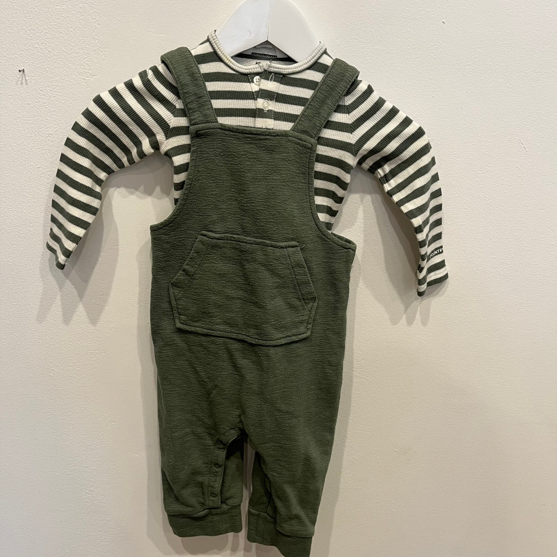 COUNTRY ROAD green top and overall set, size 6-12m