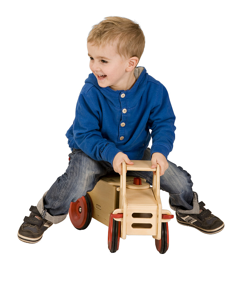 All Moover Toys are made from high quality veneer plywood ensuring great strength and durability. Further the Dump Truck is equipped with double rubber tyres for greater control and grip, and the driving is fun and exciting yet the speed is controlled, ideal for the 2-3 year-old.