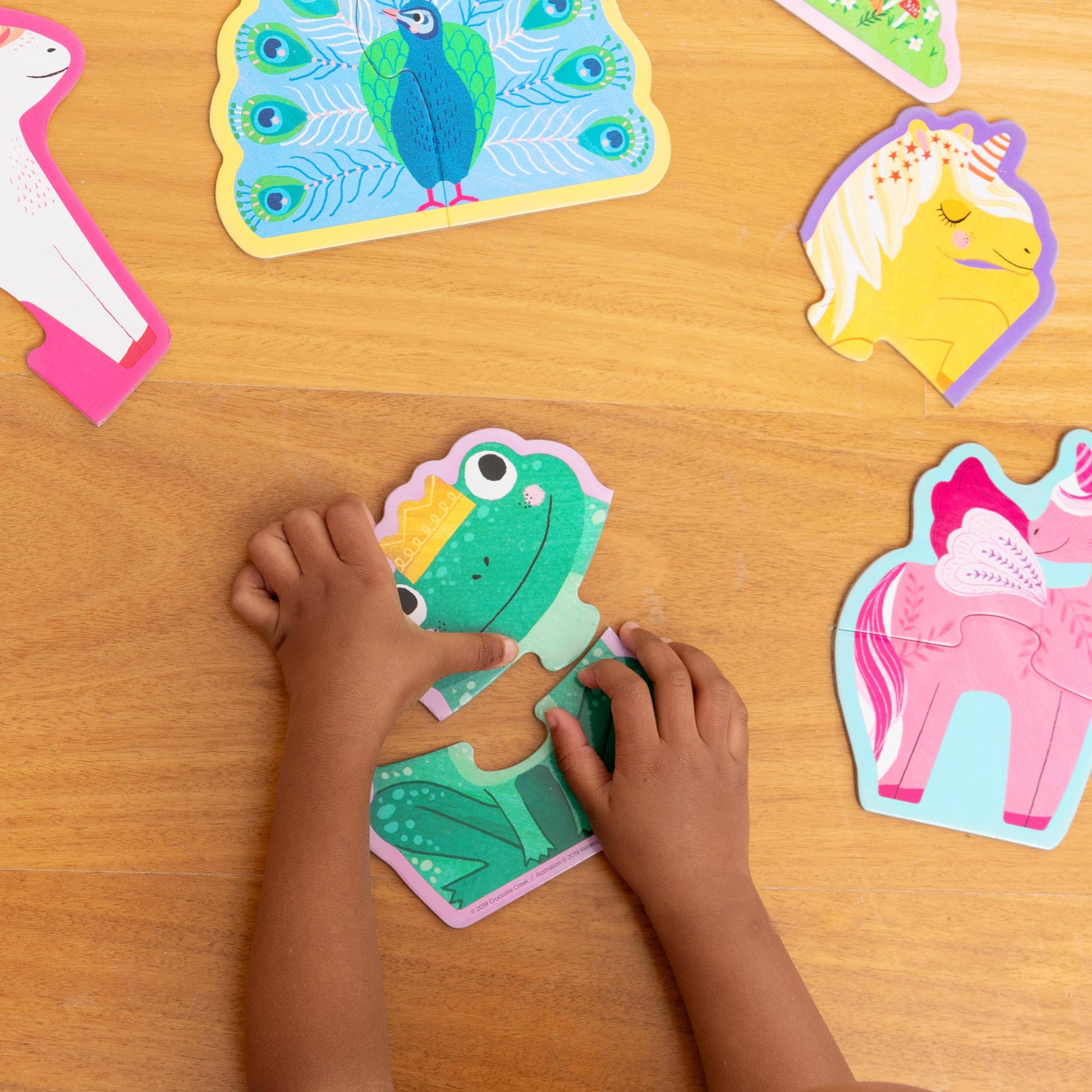 - 10 different 2-piece puzzles with pieces perfect for little hands