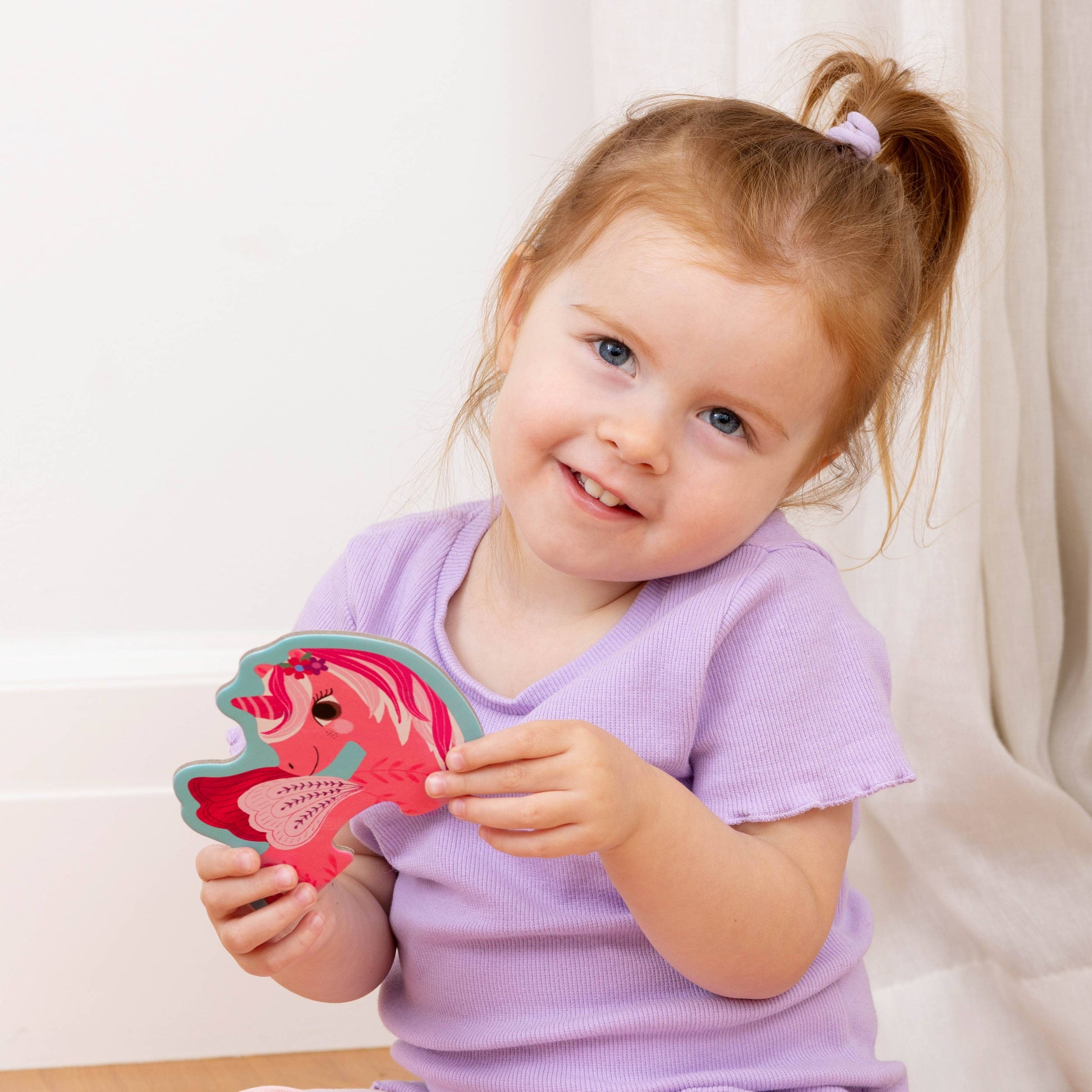 Perfect for beginner puzzling enthusiasts, Let’s Begin - Unicorn contains ten different 2-piece puzzles each with a different magical moment to match together. Colour coded on the back for easy sorting and colour matching, children can reveal frog princes, peacocks and (of course) unicorns using the sturdy, chunky pieces ideal for little hands.