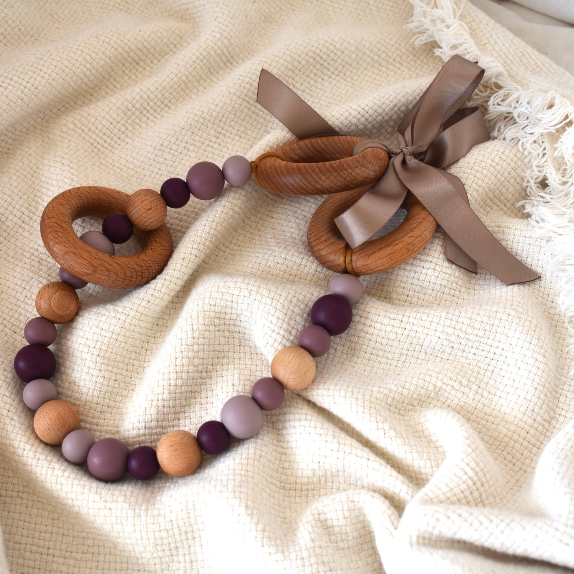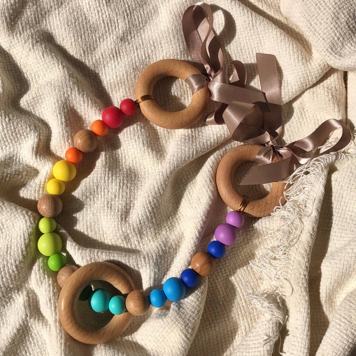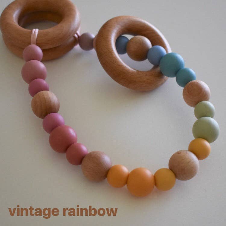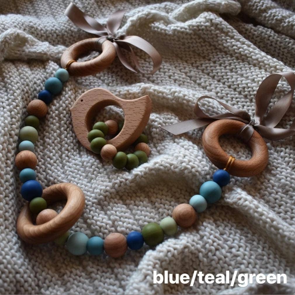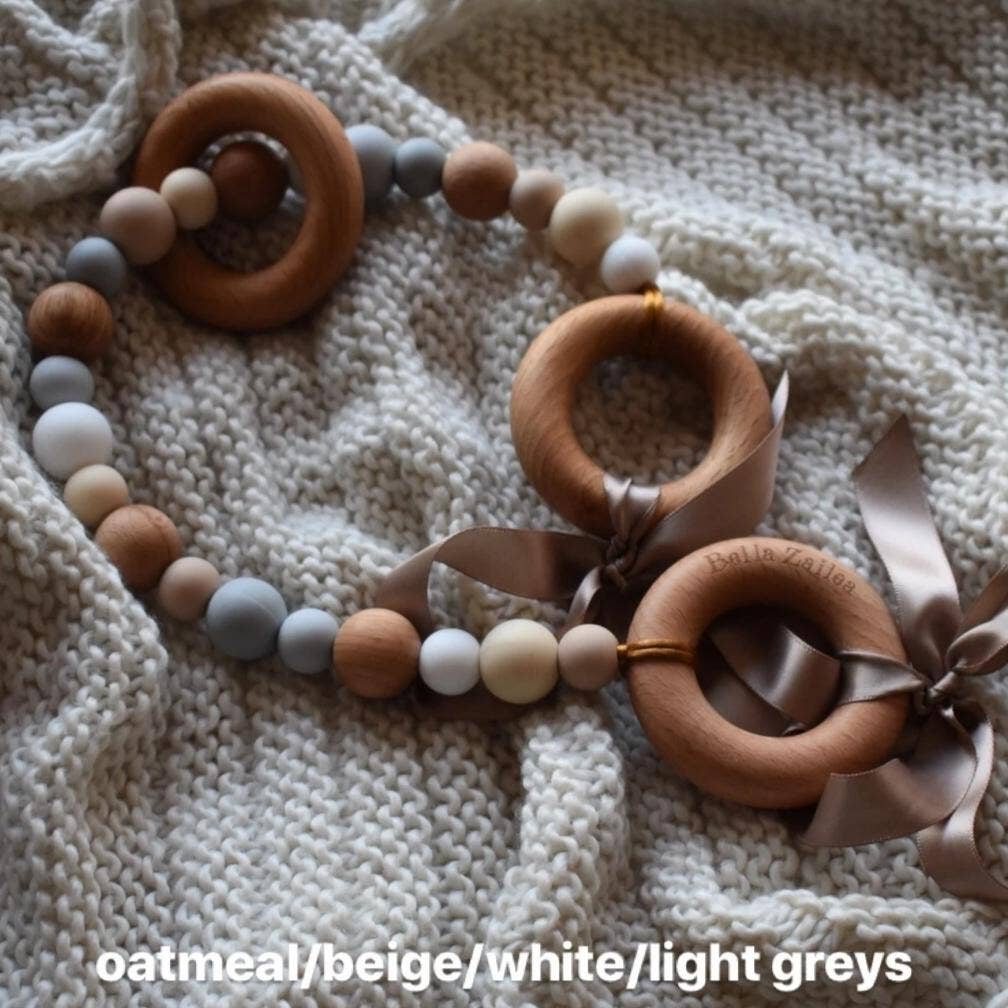 Add style to your pram and give your bub something to entertain themselves with with our beautiful silicone and wood Pram Garlands! Available in a range of gorgeous colours. Simply tie the garland's ribbons to the frame of your pram. The beads are all non-toxic, so safe for bub to grab and chew.