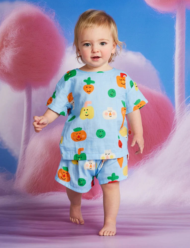 Features a relaxed fit, breathable muslin cotton, and easy-wear shape for everyday play.